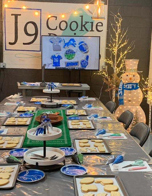 Hi! I’m Janine, otherwise known as J9, owner of J9 Cookie Design. I make delicious, cut out sugar cookies in my Livonia home based business. (available for pick up or delivery only, no shipping) I also teach cookie decorating classes and host parties in my studio located at 31619 Plymouth Rd, Livonia. Contact me! I’d love to send you a quote for cookies or book your next cookie decorating party. General classes are also available for sign up here.