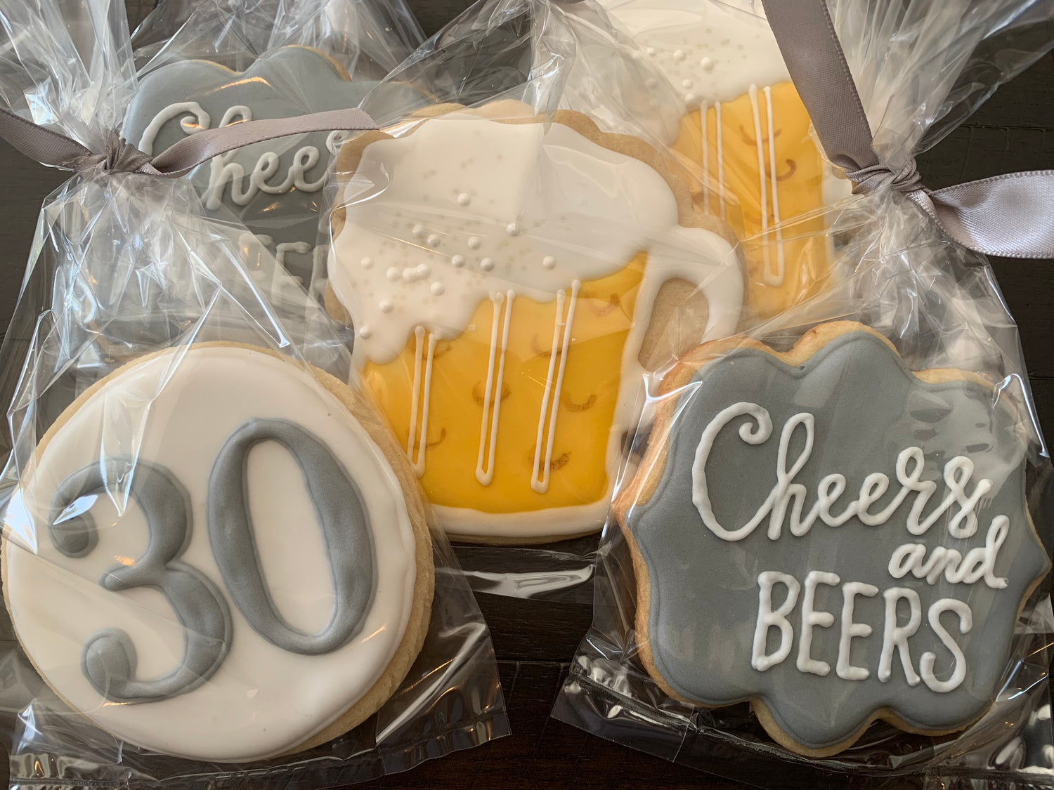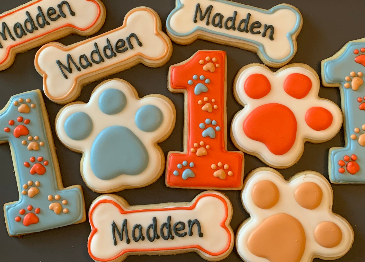 Custom cookies can really make a dessert table pop or tie in a theme to any table setting. They also make great party favors when individually wrapped and ribboned! Prices range depending on complexity but are generally $40-$48 doz. wrapped and ribbonned. Personalization is also available. Contact me and I’d be happy to send a quote.